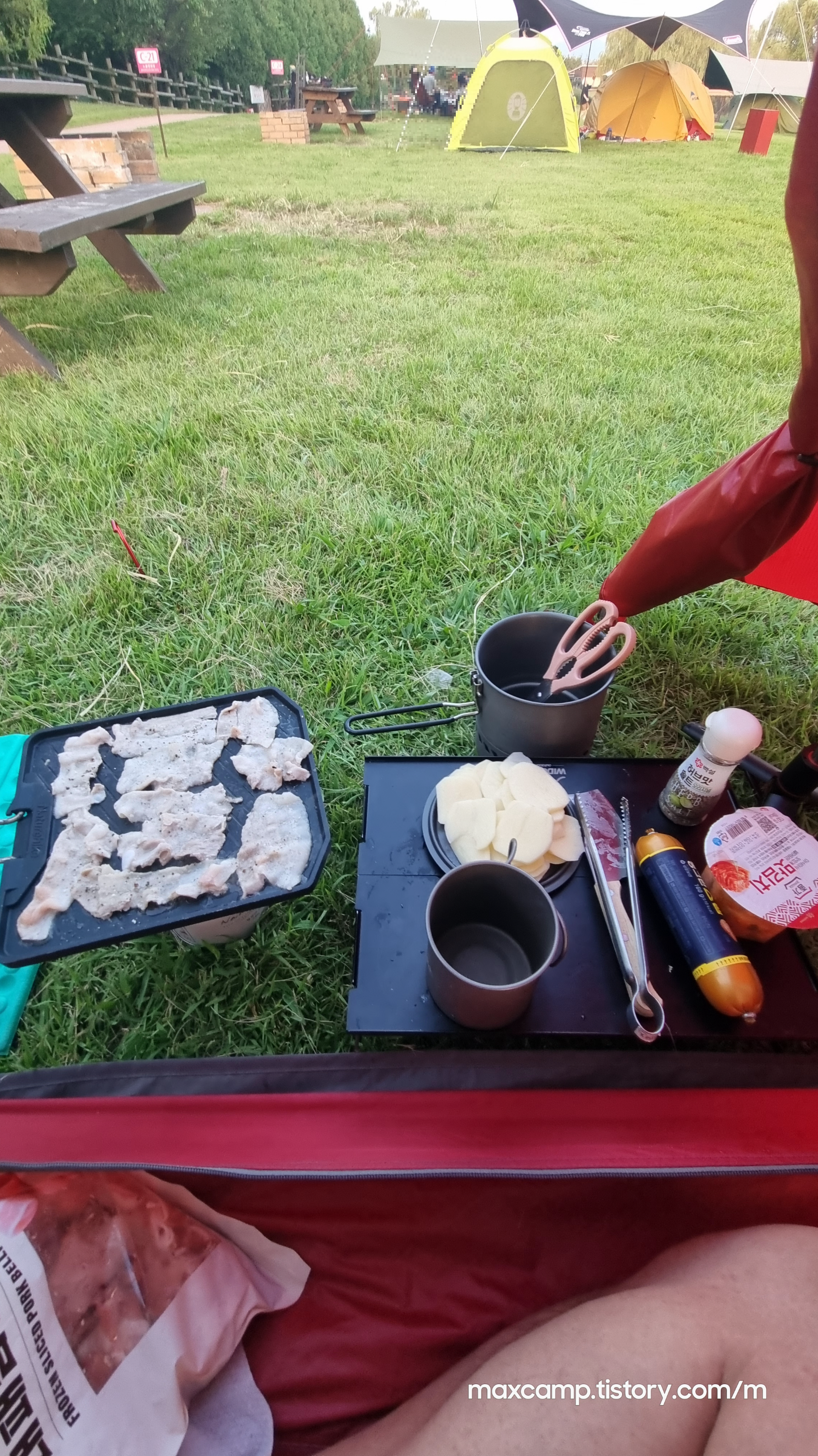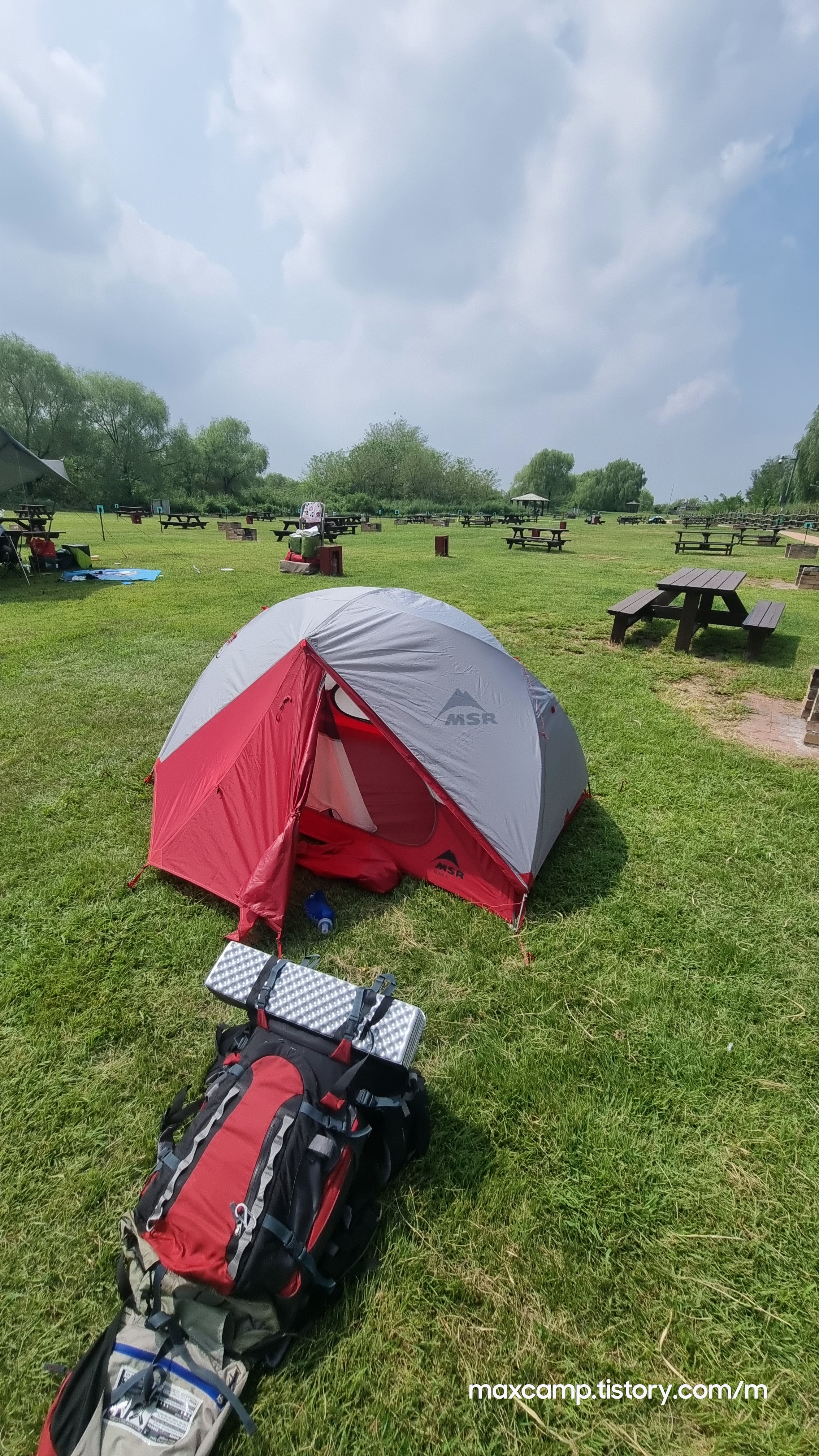 땡볕에 텐트부터 세팅하고