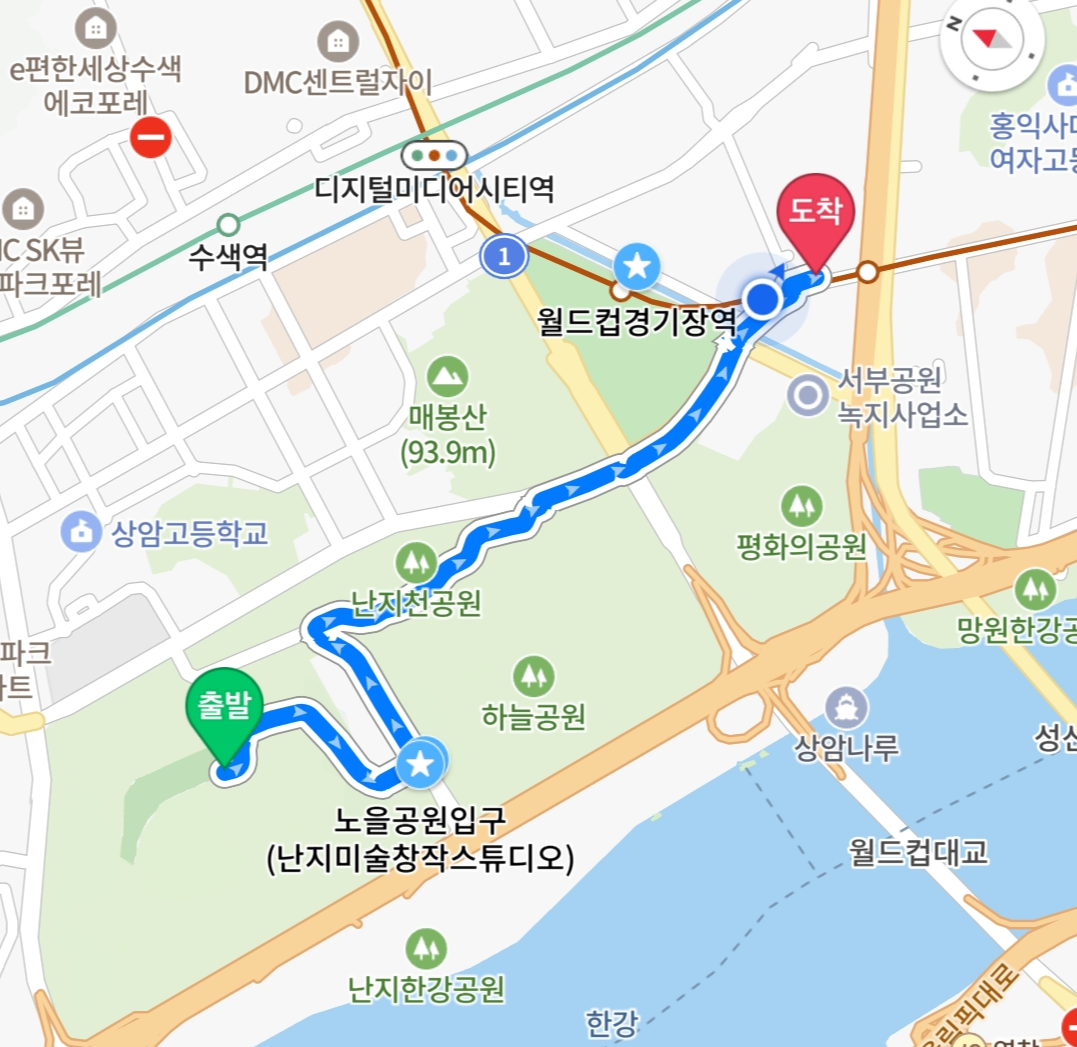 영등포에서 마포 노을캠핑장까지