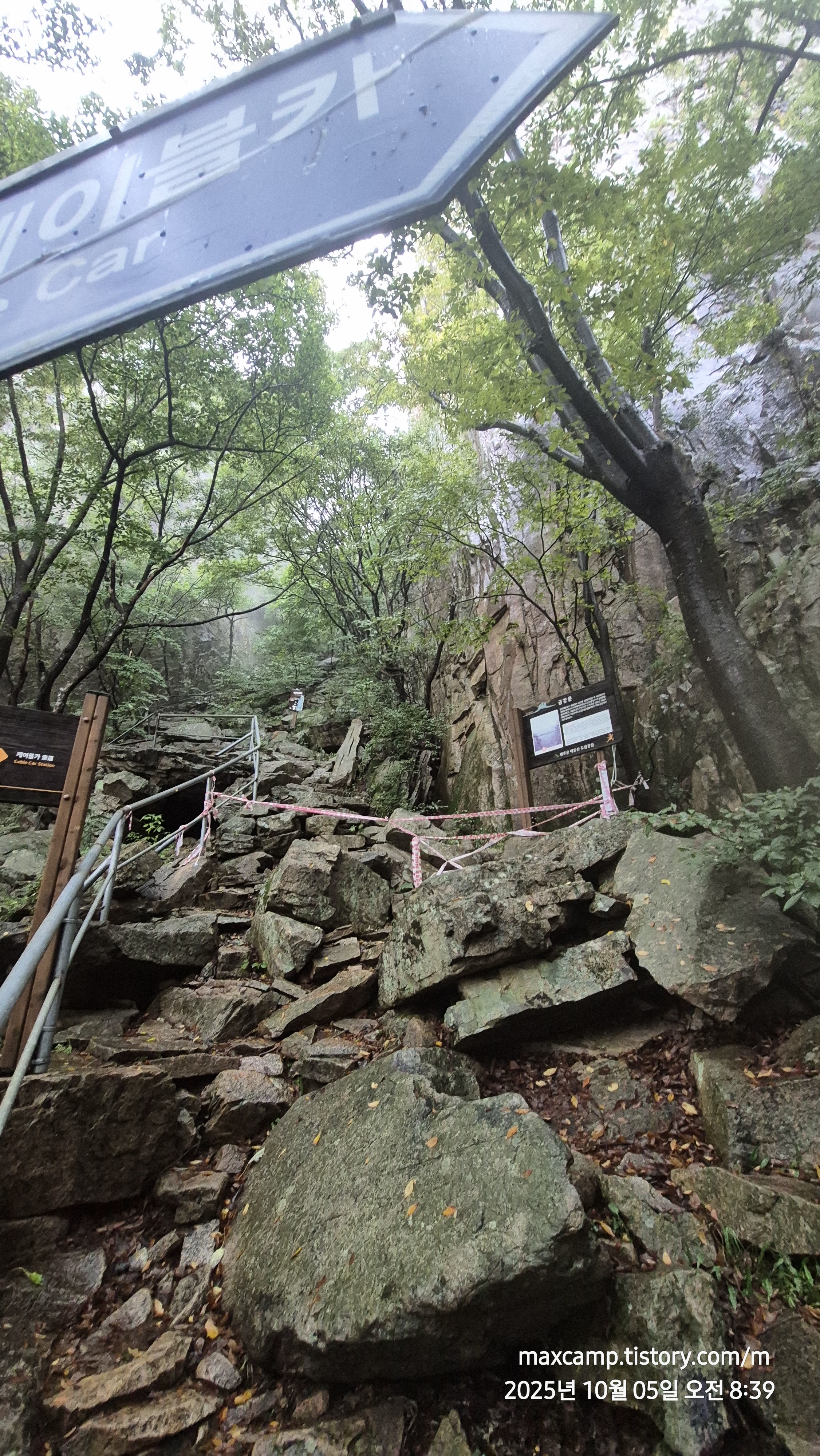 올라오다 등산로길이 폐쇄되어