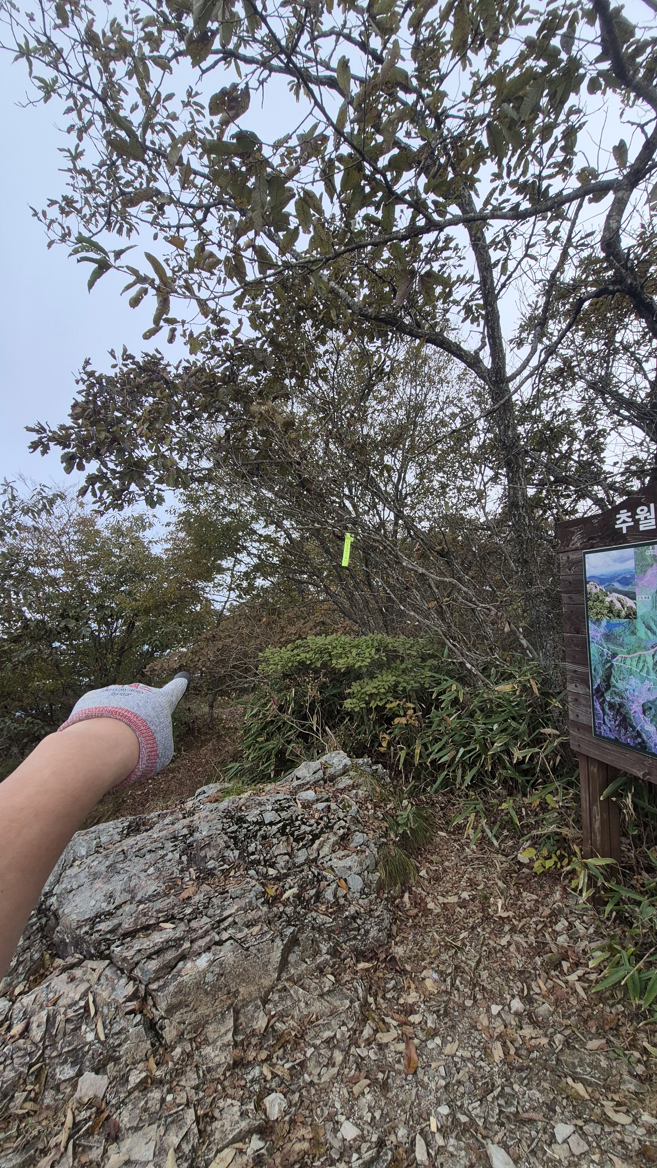 정상 부근 표지판 근처 조망터로 향합니다