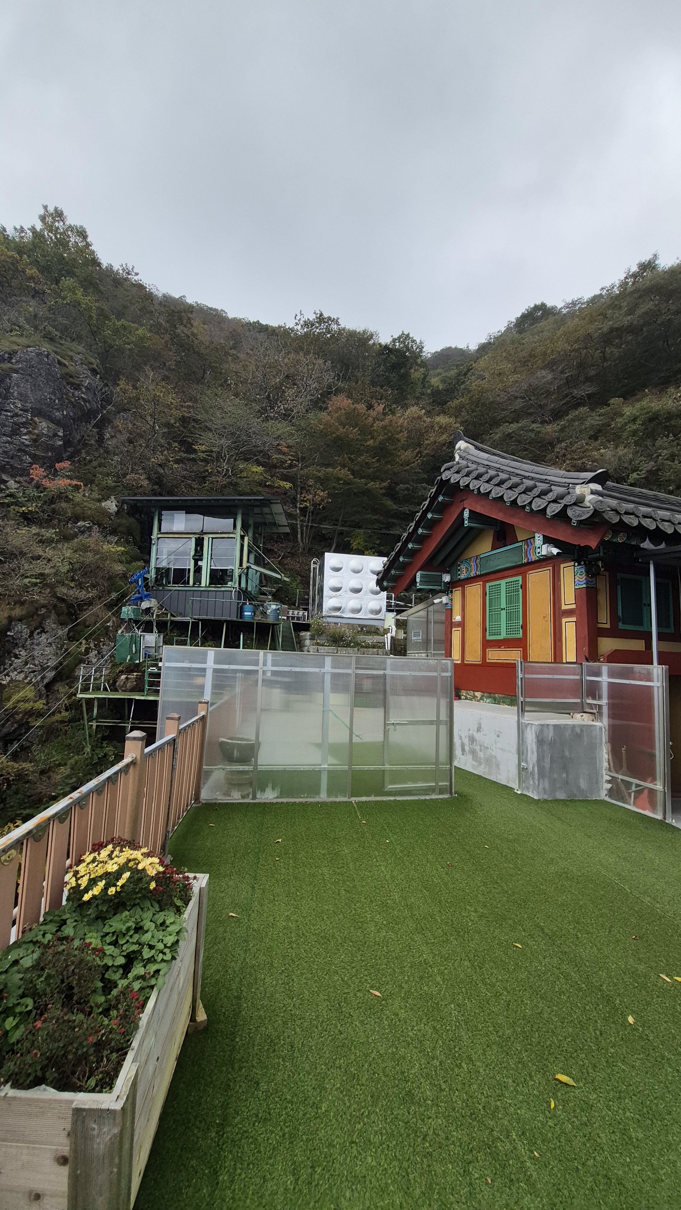 역시 사찰에서 이용하는 케이블카가 보인다
