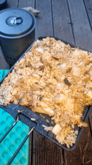 양이 많아 절반은 김치볶음밥