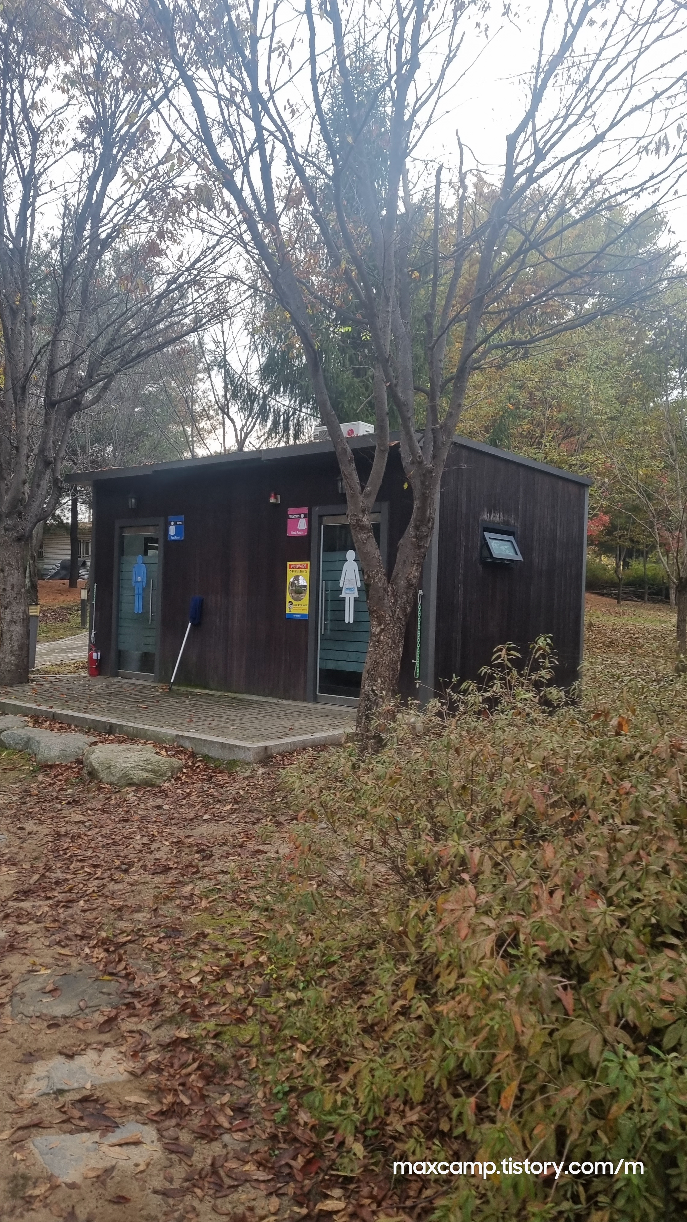 화장실이 야영장과 체육시설사이에