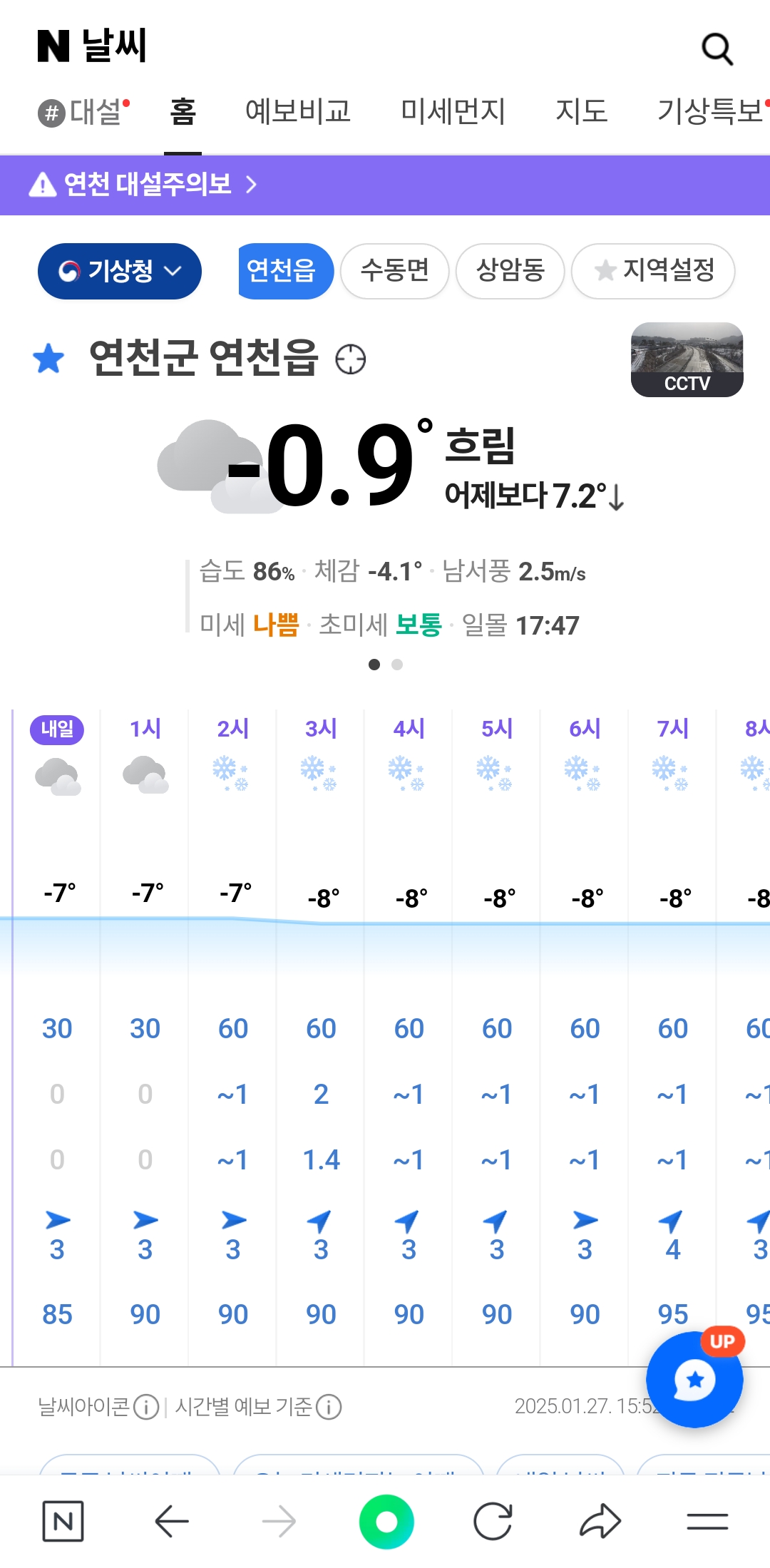 역시 대설주의보가 있습니다