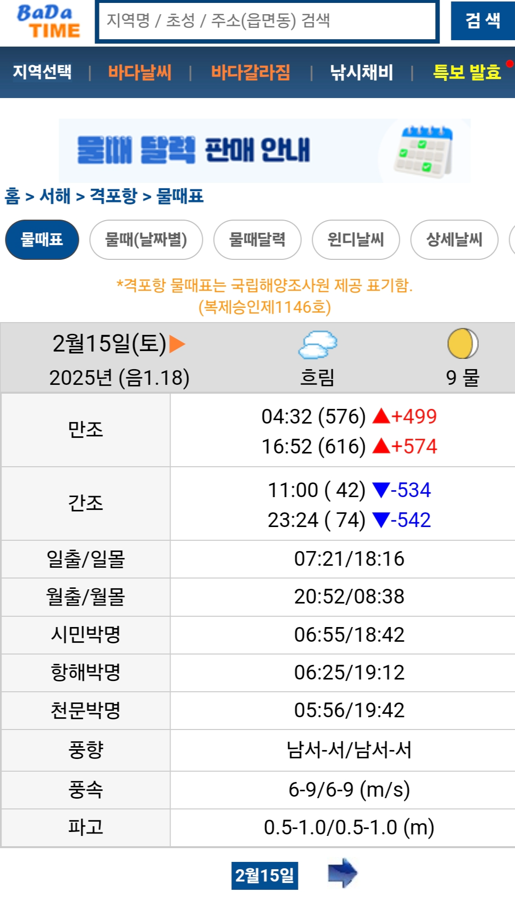 물때표 격포항을 참고하셔서
